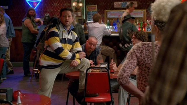 The two cousins meet at the Crab Shack (during the incident when the bees swarmed and are attacking Camden County) after a long time during Earl and Joy's anniversary party, when Earl finds out he had a love affair with Joy. Angry for that, Earl shows to be finally more courageous than his cousin. Still, he and Randy don't like their cousin Blake ever. That moment finally happened after Earl's obnoxious cousin Blake said, "I'm gonna be busy around the holidays... spreadin' Joy". Even that have ticked off Joy as well when he said her name in that smooth, yet crude sentence. Earl tackled him and the two fight. Then one of the bees came inside the Crab Shack and starting swirling around everyone. Blake ran like a coward and hid in his tent when Joy fell down to the floor helplessly. Earl steps in and stabbed the bee with a corndog stick, thus saving Joy.