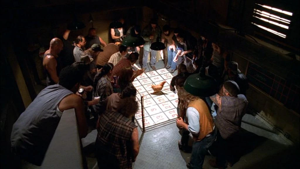 After winning all of Rosie's money at the Crab Shack, Earl was still hungry for gambling. He was approached by a man who told him to go to a place in East Camden where there would be some gambling action at 2:00am that night. Earl went along and found himself at a chicken coop that was surrounded by many people, all betting on which square of the pen the chicken would excrete in. After the place closed, he found an overseas betting phoneline where he could bet on all kinds of things, including who would win the elections in the Congo, which once again he won.