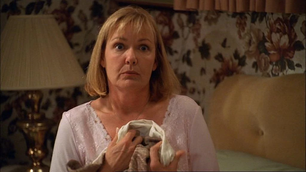 At Earl's birthday party, Kay reminded Earl of the time he came in to her house drunk and peed on the living room rug ("The Birthday Party").
