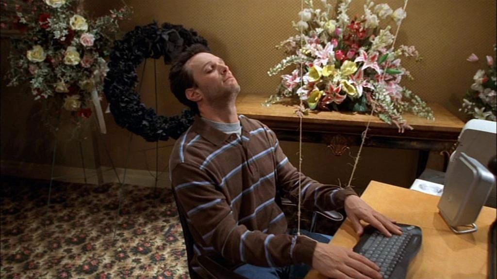 Earl decides to throw Josh's funeral and invites everyone he knew including Joy, Randy, Catalina, and Darnell, who was deeply concerned about letting the deceased Josh wear his purple tuxedo from his last wedding, worrying that his suit might get contaminated or worse. Everyone who arrives to pay respects to Josh, yet didn't know him very well, are mistaken his funeral to be a great party. Earl goes to the toilet since he forgot to practice on his eulogy, but finds it difficult to search for the right words to lay Josh's soul in peace. When Earl returns from the restrooms, he thought to himself "while I spent time in the bathroom to find the right words to send Josh off to Heaven, everyone at the funeral start raisin' hell." as he sees everybody has gotten drunk and ruined the service. Earl believes he has failed with his half-hearted attempt at a funeral and orders everyone to leave.